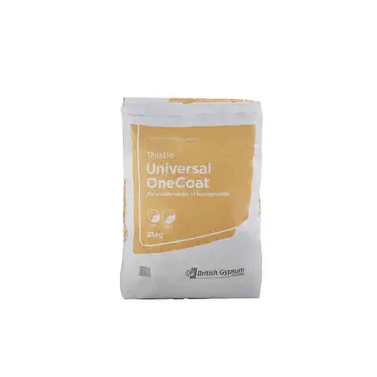Thistle Universal One Coat Plaster is a high‑performance, multi‑purpose plaster designed for strong adhesion, smooth application, and dependable results across a wide range of backgrounds. Engineered for excellent workability, it spreads easily to achieve a stable, level surface without the need for separate undercoat and finish layers. Its efficient, one‑coat formulation provides solid coverage and a clean, refined finish, helping tradespeople save time without compromising quality. Suitable for both high‑ and low‑suction substrates—including brick, blockwork, and plasterboard—it delivers consistent grip and long‑lasting performance on diverse surfaces. With a controlled setting time that supports accurate levelling and shaping, it is ideal for renovation, repair, and new‑build projects alike. Trusted by professionals for its versatility, reliability, and predictable finish, Thistle Universal One Coat Plaster offers a practical all‑in‑one solution for creating smooth, durable interior surfaces.