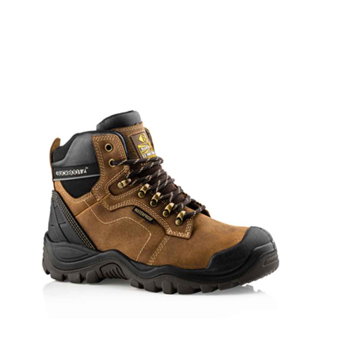 The Buckbootz BSH009BR Buckshot Safety Boots are tough, waterproof work boots built for demanding environments. With a durable leather and textile upper, reinforced toe protection, and a slip-resistant sole, they offer reliable grip and impact resistance. Hi-vis accents improve visibility in low-light conditions, while the cushioned insole ensures all-day comfort. Ideal for construction, logistics, and industrial work, these boots deliver dependable safety and performance across challenging terrain.