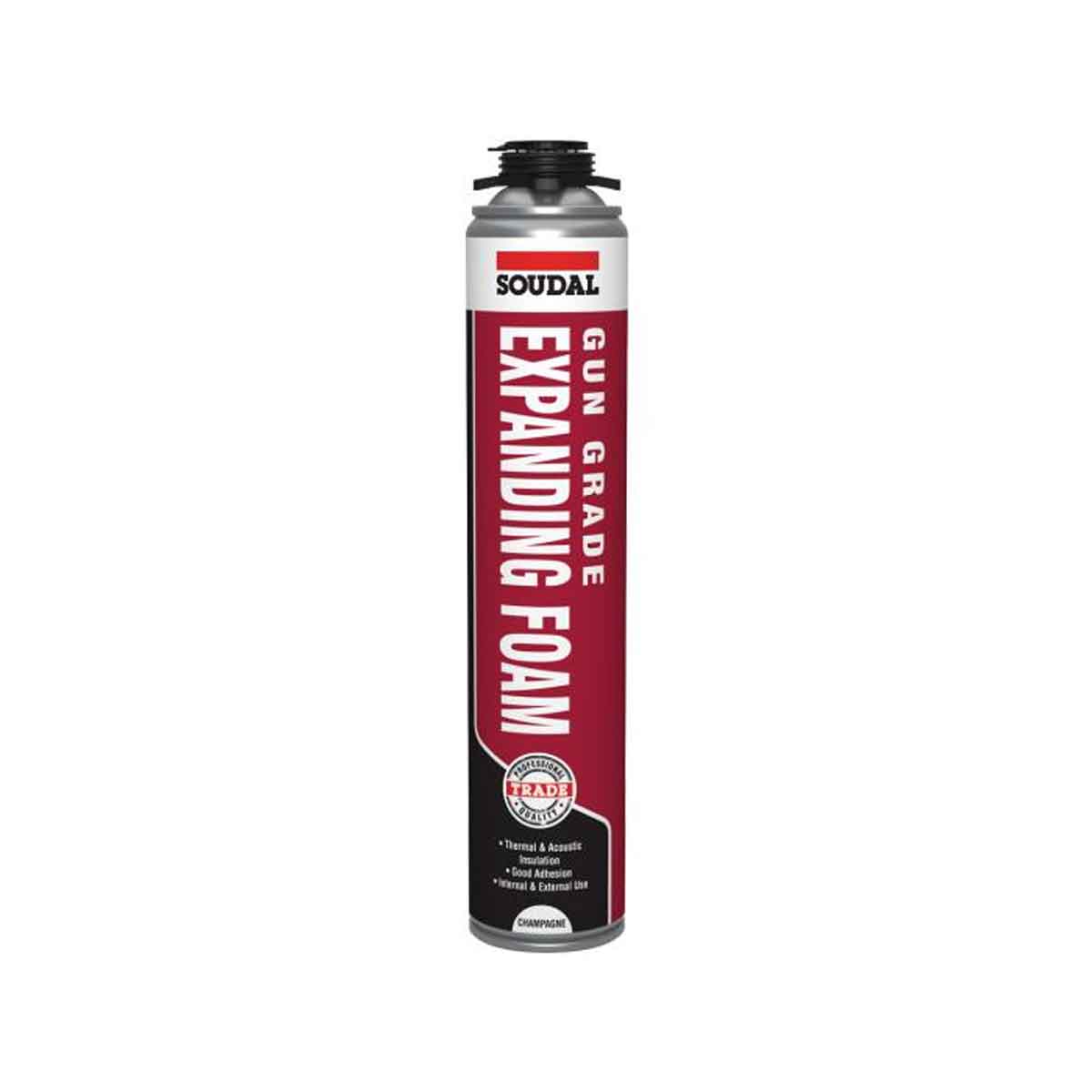Soudal Gun Grade Expanding Foam is a professional polyurethane foam for precise sealing and insulation. Designed for applicator guns, it offers controlled expansion to fill gaps and cavities, improving thermal and acoustic performance. It bonds to wood, metal, masonry, and plastics, resists moisture and temperature changes, and is ideal for joints, frames, and gap filling—trusted for reliability and efficiency.